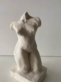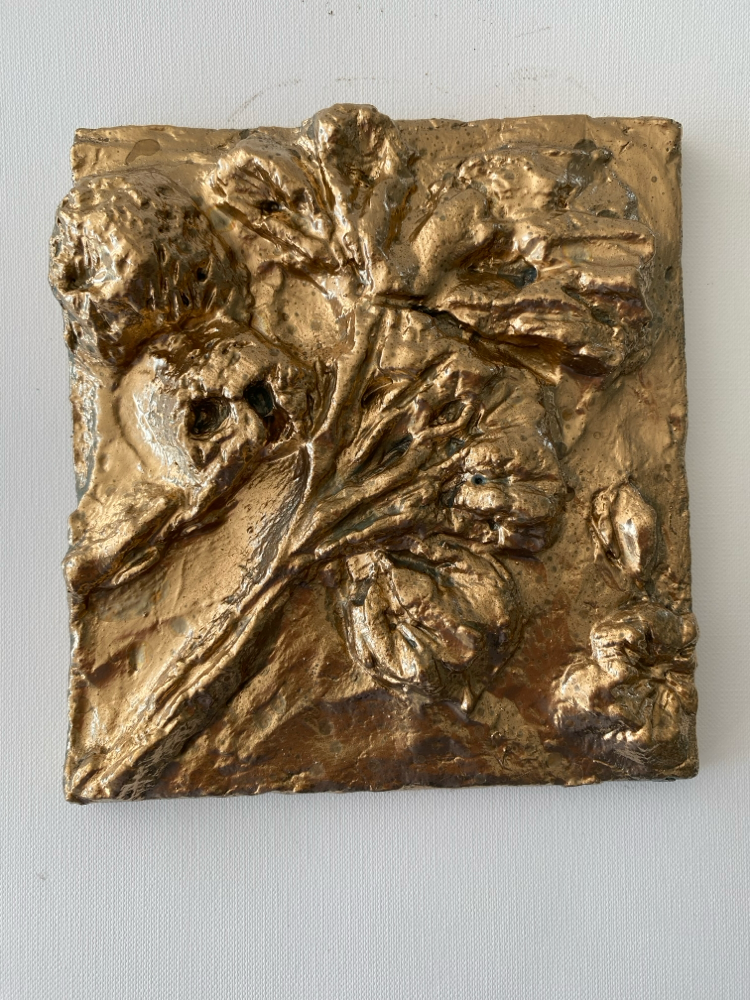Handgemaakte beelden en tegels van gebakken klei en gegoten gips